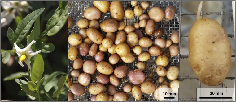 Les images ci-dessous proviennent d’une étude montrant des traces de granules d’amidon, indiquant la consommation la plus précoce des pommes de terre en Amérique du Nord.[9] Il s’agit de Solanum jamesii (à gauche), des tubercules produits par un seul individu après une saison de végétation (au centre) et un tubercule à l’extrémité d’un stolon (à droite).