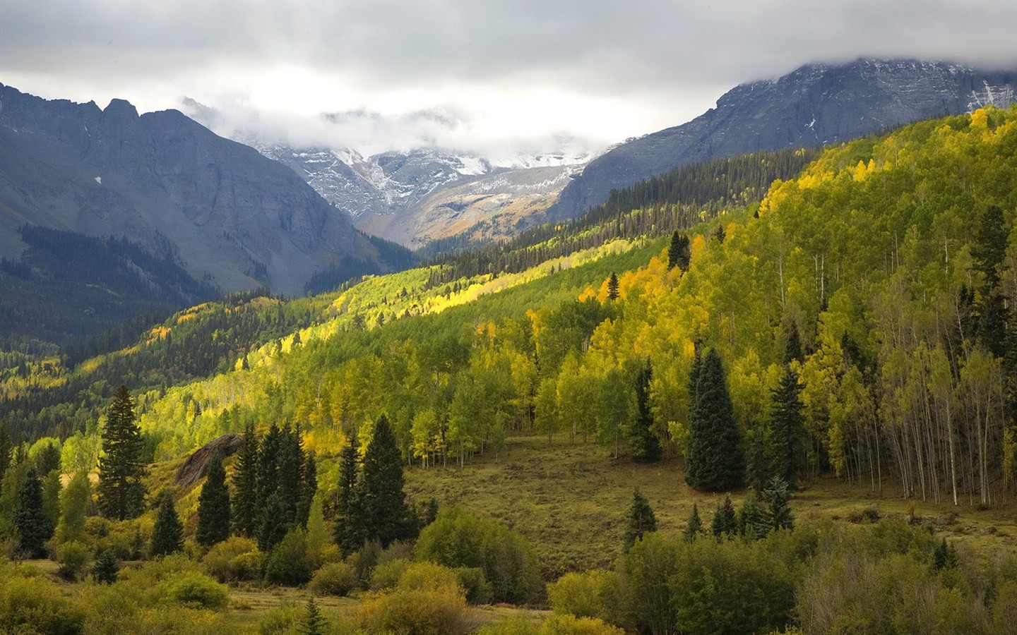 wallpaper wallpapers fond d’écran fonds d’écran papier peint nature montagne plaine forêt bois champs neige herbe arbres plantes fleurs vierge virgin trees forest mountain snow hills hill daylight soleil lumière 1400*900