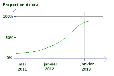 Une image est plus parlante que mille mots. Voici la courbe de l’évolution de la proportion de cru dans mon alimentation depuis 2011.
