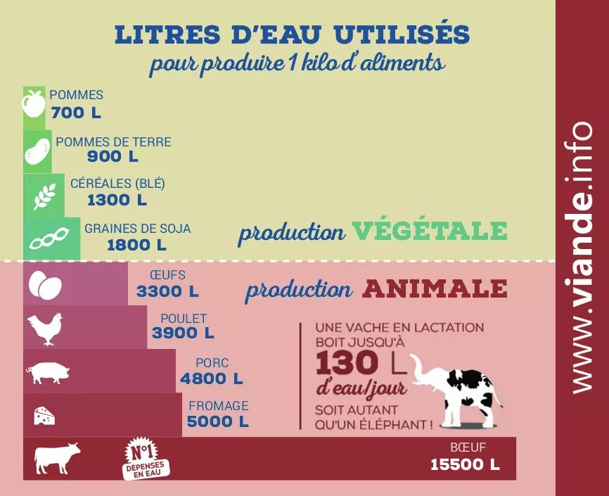 Litres d’eau utilisés pour produire 1 kilo d’aliments