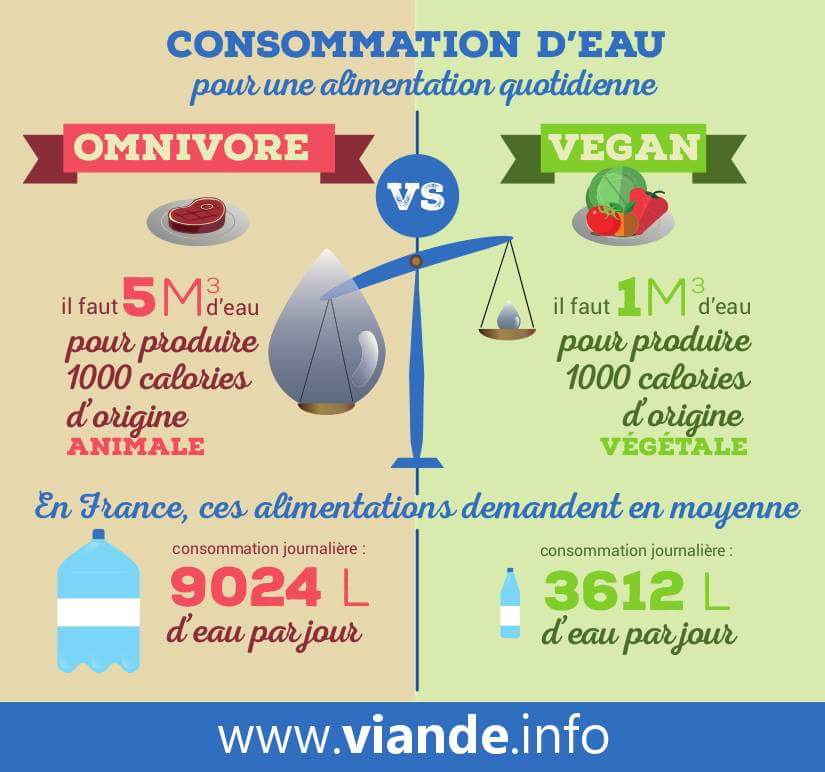 Consommation d’eau pour une alimentation quotidienne: omnivore vs vegan
