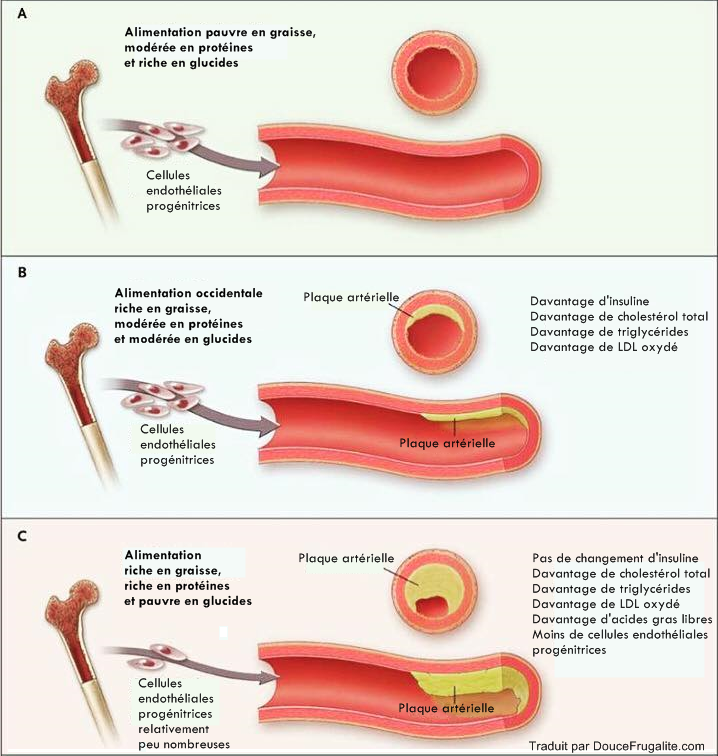 “Je ne connais pas une seule étude publiée dans un journal évalué par un comité de lecture indiquant qu’une alimentation pauvre en glucides telle que celle décrite dans l’étude Tulane ait enrayé ou renversé la progression d’une coronaropathie. En effet, comme le montre cette étude NEJM, une alimentation pauvre en glucides nuit aux artères.