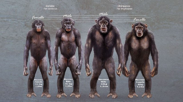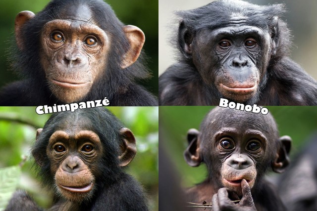 - Bonobos : ressemblent beaucoup aux humains. Mangent surtout des fruits, des plantes qui ressemblent Ă de la canne Ă sucre, quelques verdures, des racines et des bourgeons. Apparemment pas de noix. Ils mangent des insectes, quelques poissons et des petits animaux (produits animaux = 1 % de leur alimentation).