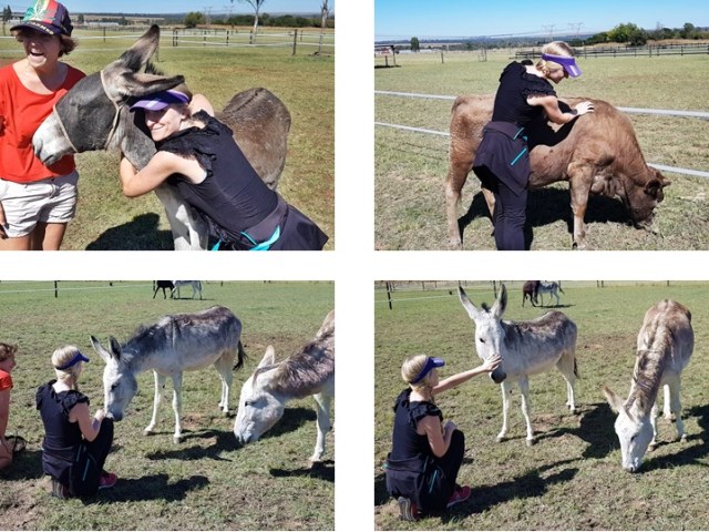 Mel, Paul et moi avons pu passer de tendres moments avec des Ăąnes, une vache et des cochons.