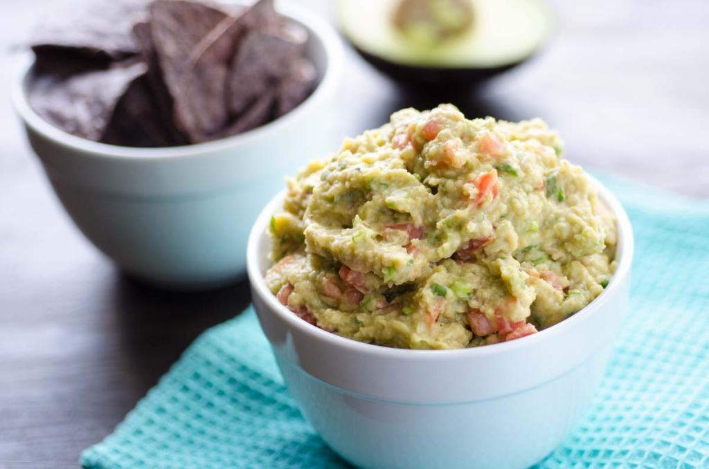 Ajouter des pois chiches au guacamole réduit la quantité de graisses sans sacrifier le goût ! Servir avec des mini-carottes ou d’autres légumes.