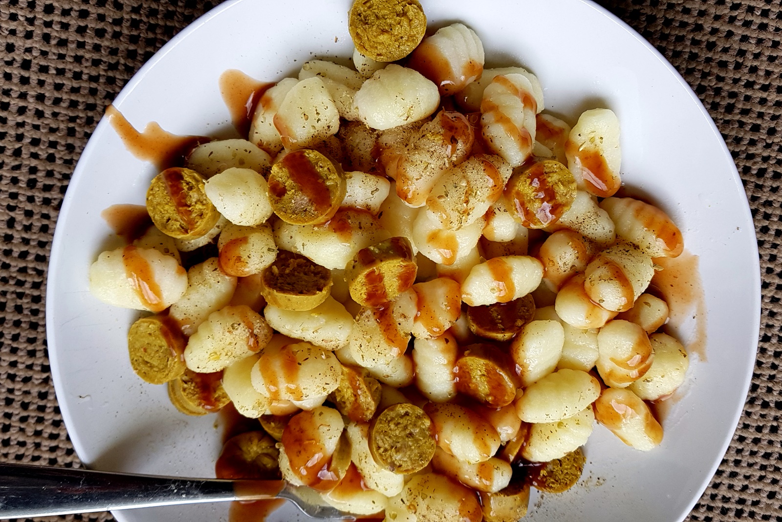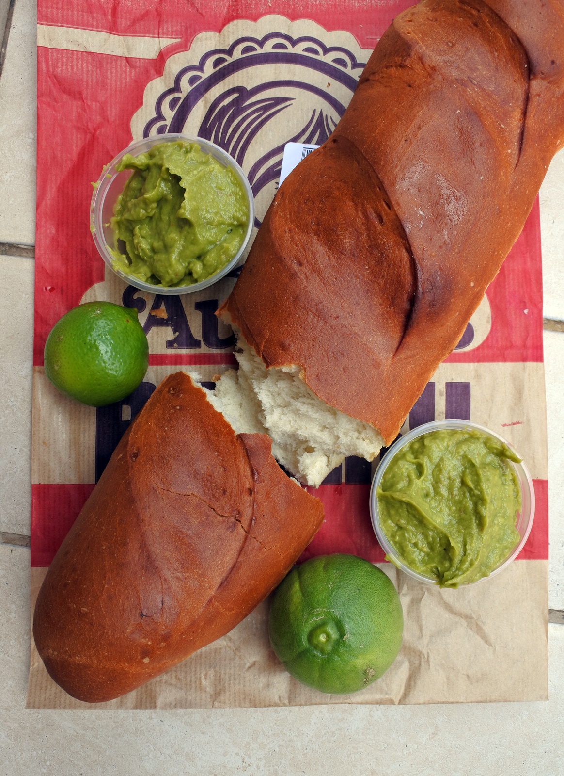 Manger des aliments assez gras quelques fois par semaine, en plus d’une alimentation 80/10/10 va aussi aider à reprendre du poids sans compromettre sa santé. À gauche ci-dessous, c’est une assiette « Swahili bunini » chez Lekker Vegan au Cap. À droite ci-dessous, du guacamole avec une baguette.