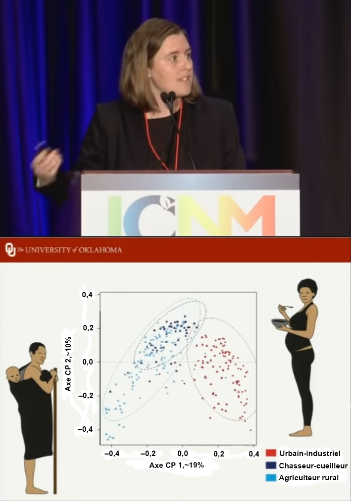 Schémas ci-dessus : Lors de son intervention sur les mythes sur l’alimentation paléolithique à l’International Conference on Nutrition in Medicine, l’anthropologue Christina Warinner parle de la diversité du microbiote intestinal des humains (cf. réf. 12).