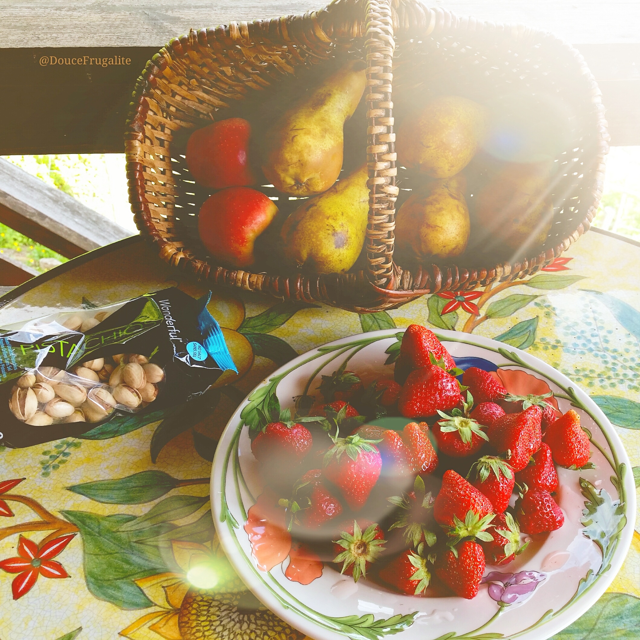 Fraises, poires, pommes et graines de pistache sans sel