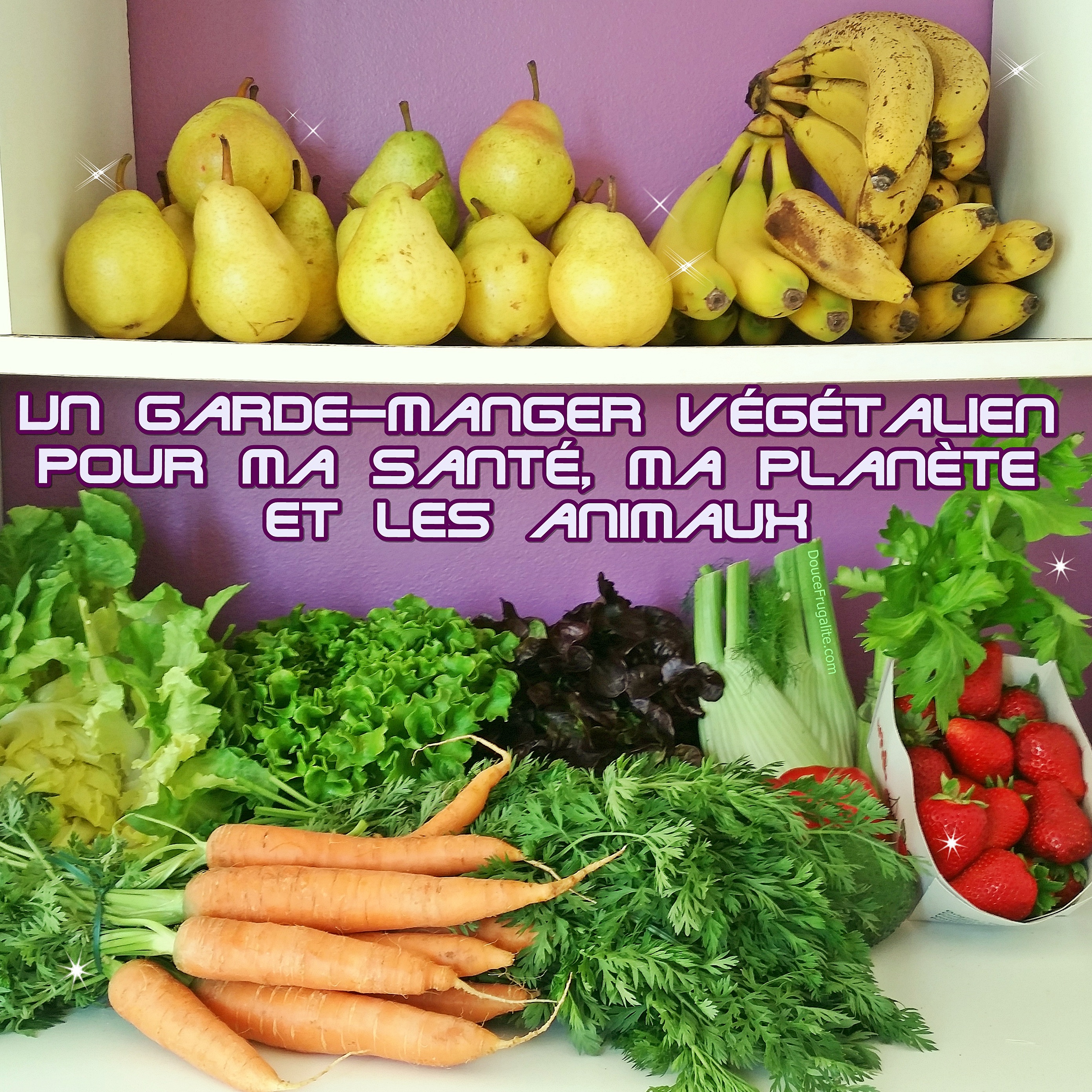 Garde-manger végane – poires, bananes, carottes, salades, fenouil et fraises