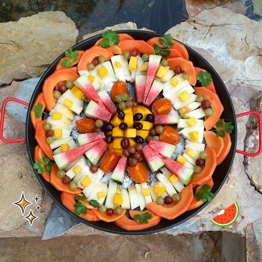 papaye, mangue, raisin, melon, pastèque, kaki, coriandre