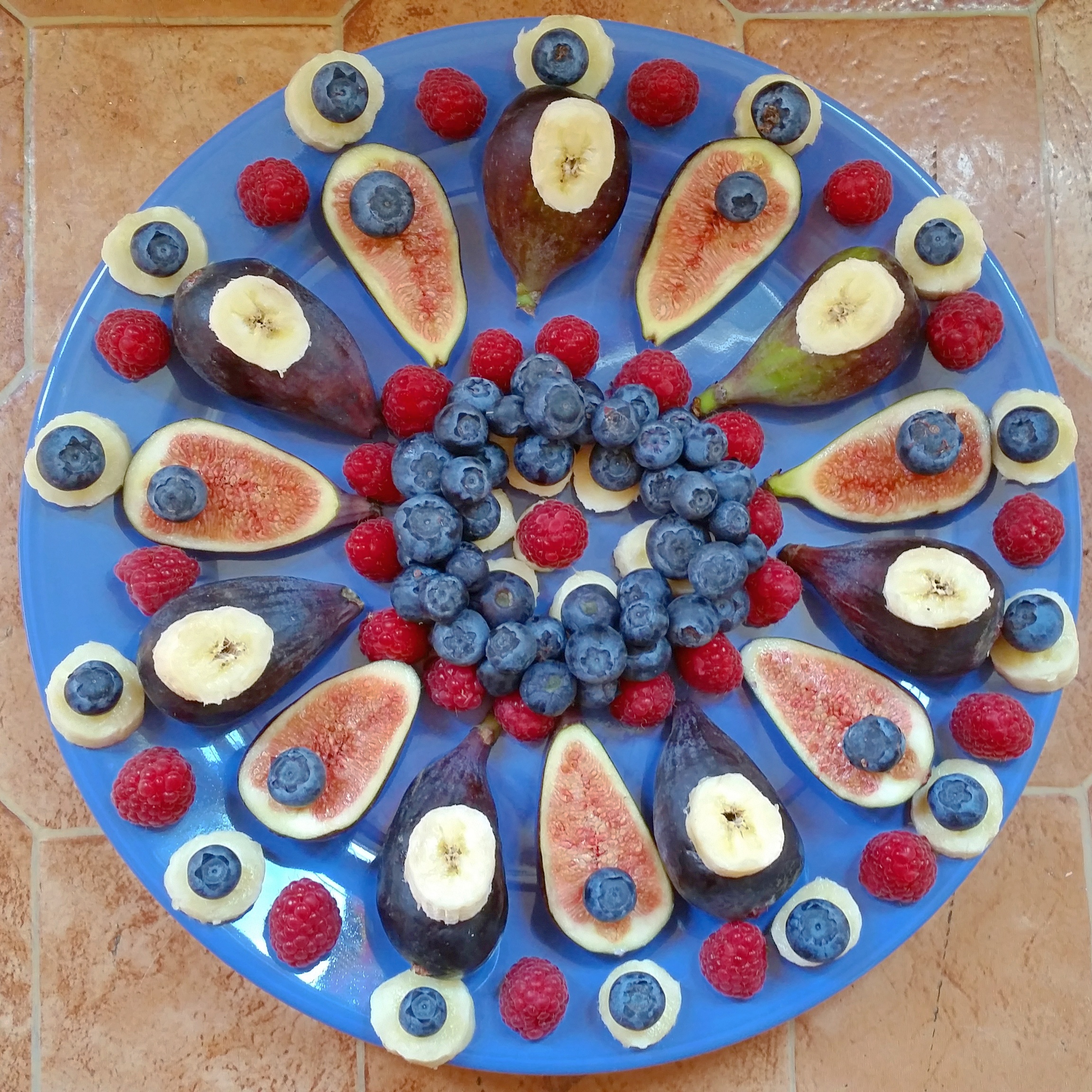 Mandala de fruits – figues fraîches, myrtilles, bananes et framboises