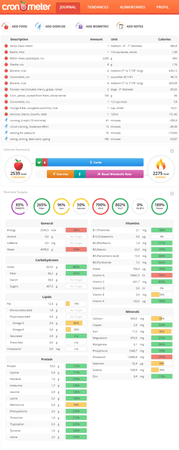 Fiche nutritionnelle Cronometer du 22 juillet 2015