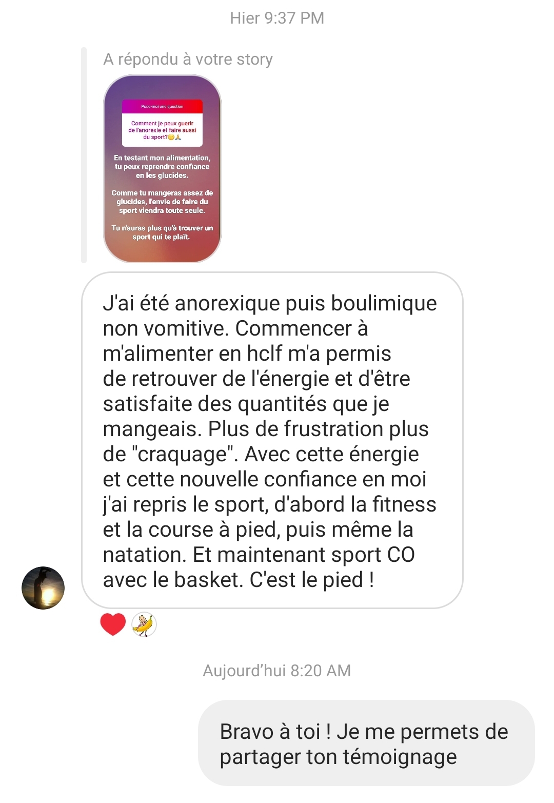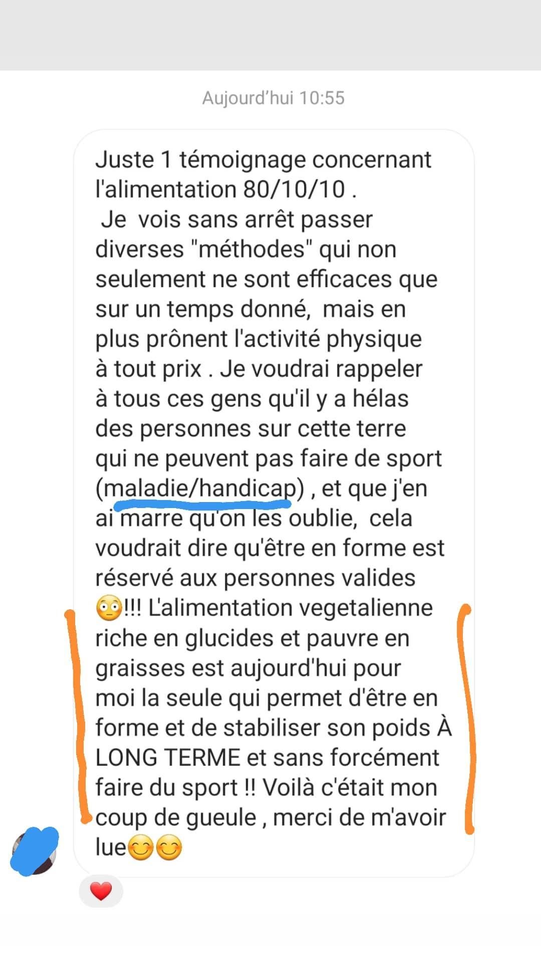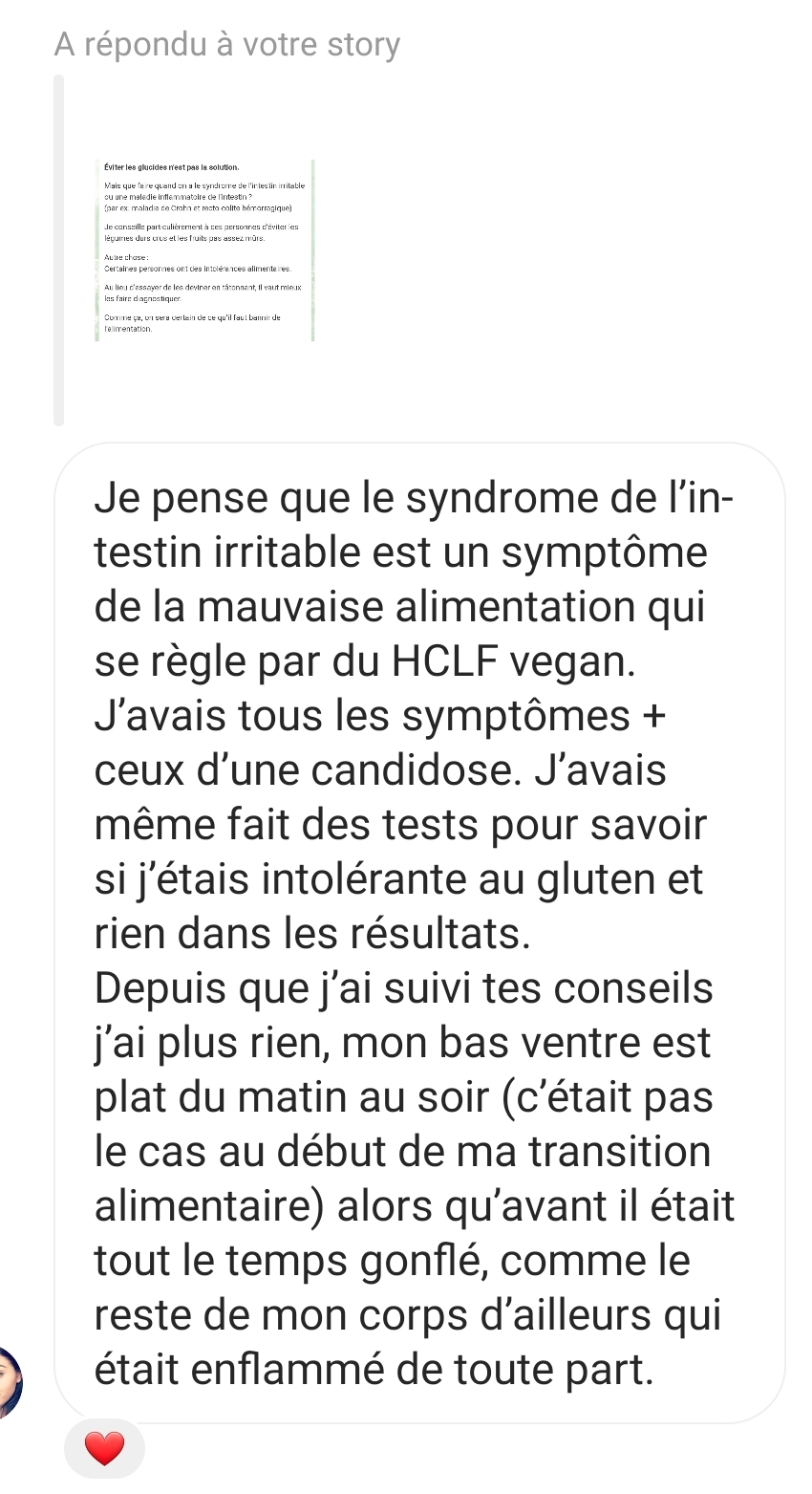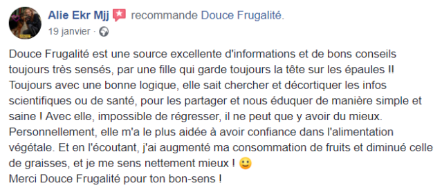 Je tenais absolument à t’écrire pour plusieurs raisons, mais surtout principalement pour te remercier de t’exprimer sur les réseaux sociaux et de nous partager non seulement de jolies valeurs éthiques mais également de nous permettre d’avoir une meilleure alimentation, car aujourd’hui je peux le dire tu m’as aidé dans le passé, tu m’aides aujourd’hui et je pense que tu ne cesseras de m’aider 🥰
