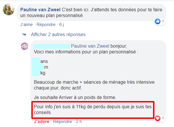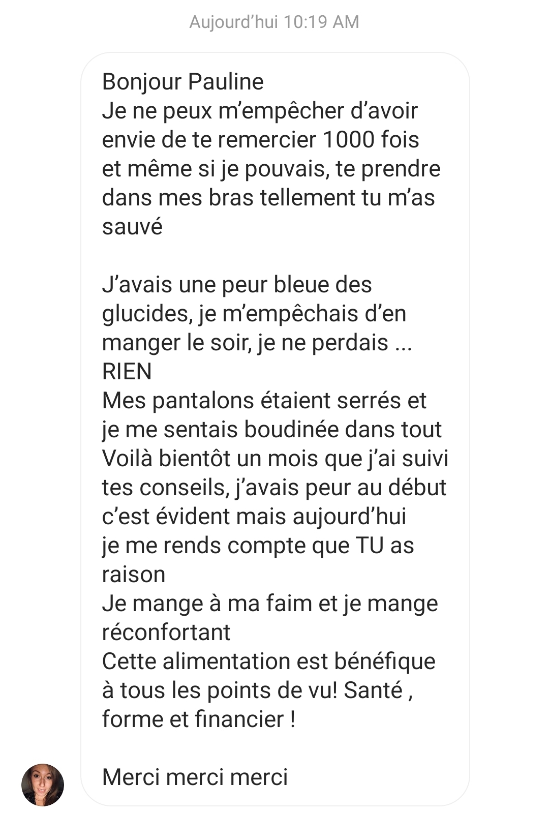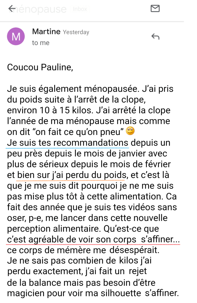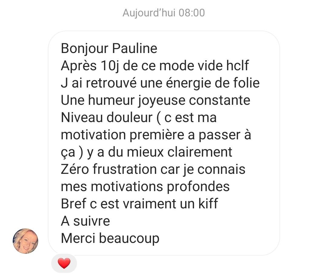 J’ai perdu 17 kg et pour la première fois de ma vie j’ai un poids stable. Merci Pauline!