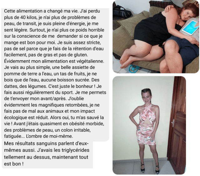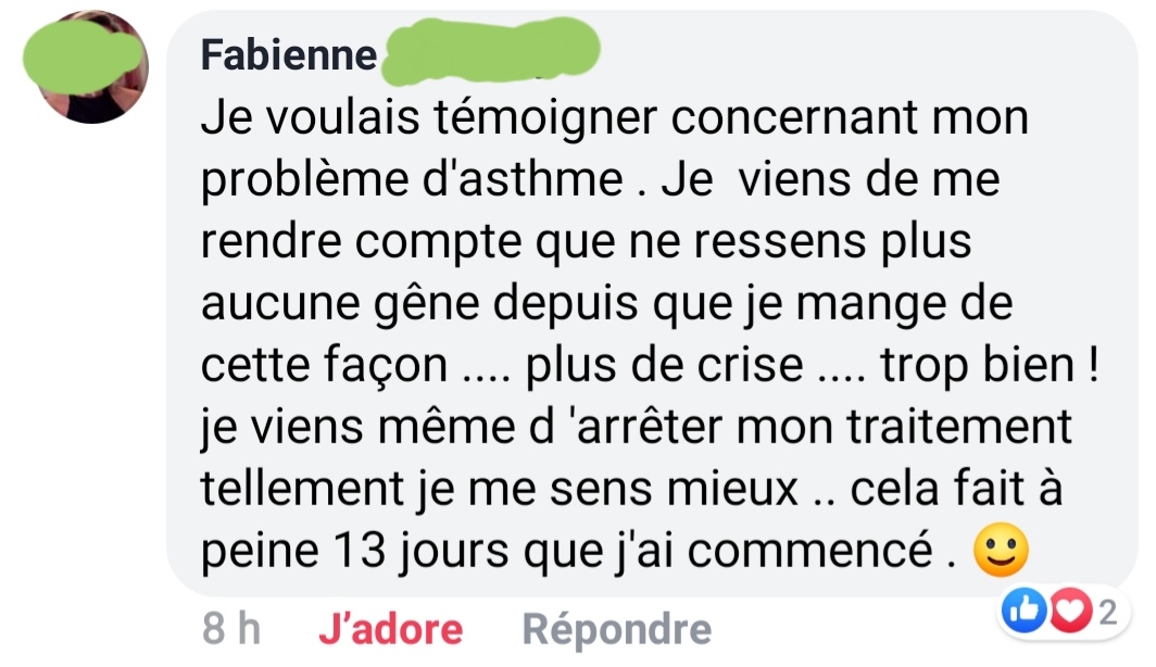 Grâce à toi, j’ai perdu 15 kg, je n’ai plus d’allergies respiratoires qui gâchaient tous mes réveils, je digère bien mieux maintenant (on m’avait diagnostiqué un intestin irritable).