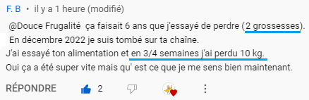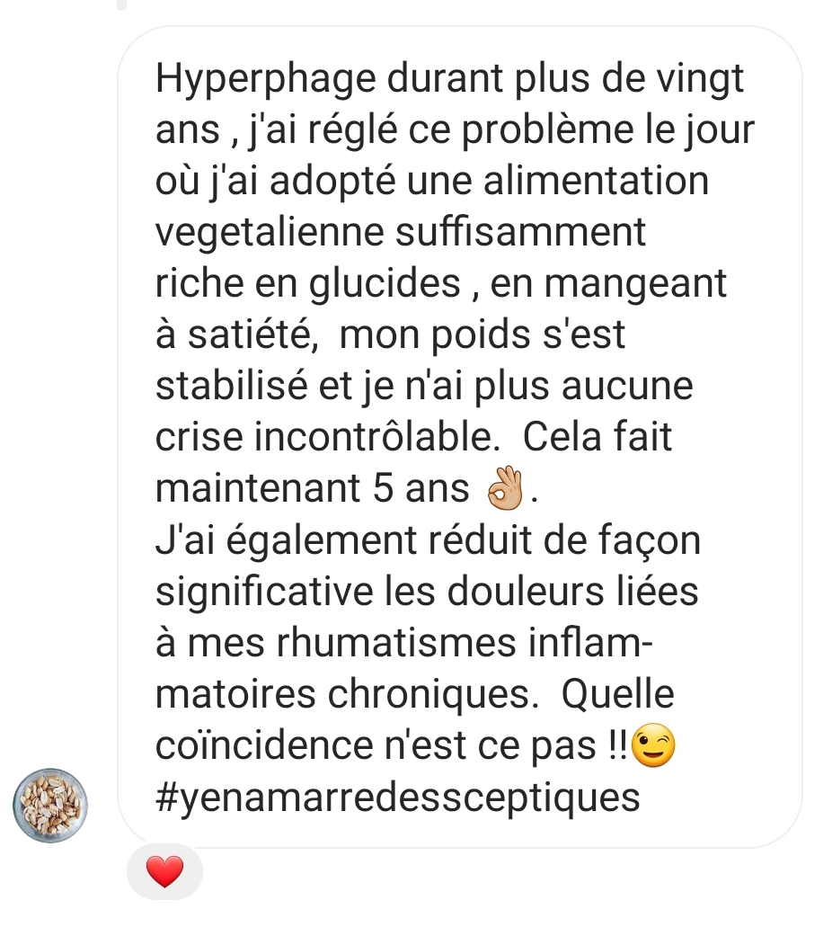 Je suis ton alimentation depuis un an, je récupère largement plus vide qu’avant et mon poids est stable en mangeant davantage. J’ai l’impression d’avoir rajeuni de 10 ans !