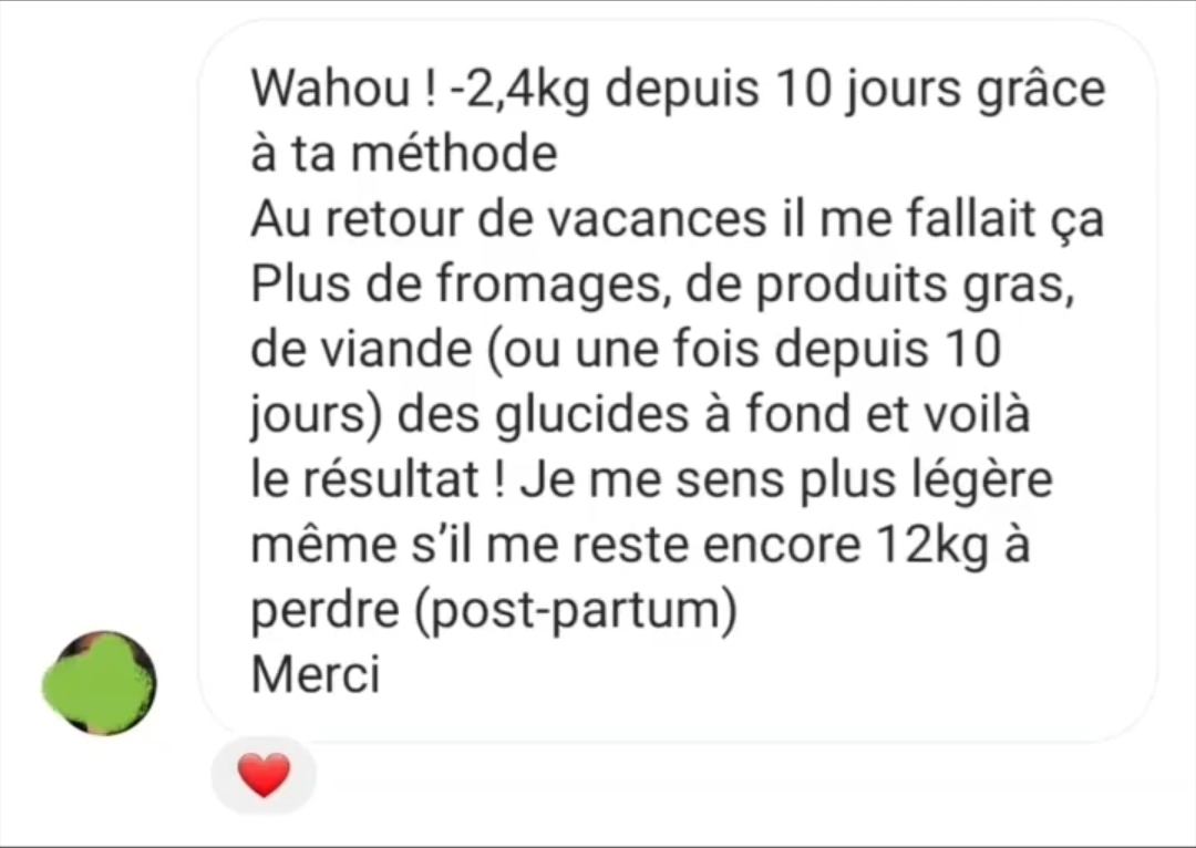 J’ai commencé le programme depuis 8 jours et j’ai perdu 2,5 kg. Je suis étonnée.