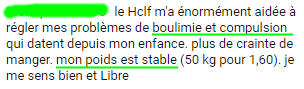 En quelques jours le bilan est sans appels: plus de crises d’hyperphagie, plus d’envies de chocolat, je suis rassasiée à la faim de mes repas et plus de crises d hypoglycémie…