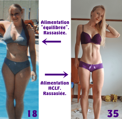 Merci d’avoir répondu si vite, le matin avant la danse, je mange 2-3 bananes mûres avec une poignée de dattes ou alors 2-3 tartines avec du pâté végétal, à ma pause dans la matinée je mange soit une pomme, soit une banane, soit un yaourt au soja. Pour le déjeuner, je mange des féculents ou pseudo-ceréales ( pâtes , pain souvent à la farine intégrale ou complète ou sans gluten, ou du quinoa, ou du riz etc …) avec une grosse salade ou des légumes cuits et parfois un steak de soja ou un morceau de tofu . Au goûter, ça peut être une compote sans sucre ajouté avec un fruit ou des fruits secs ou une tartine, et au dîner une soupe ou une salade ou des légumes cuits . Je précise que je rajoute juste un filet d’huile d’olive dans ma salade et je rajoute parfois un peu de tamari ou de gomasio dans mes plats mais très peu et je mange dans des quantités raisonnables. J’ai déjà essayé de retirer complètement les féculents et aussi les fruits mais ça ne m’à pas fait perdre un gramme. Il y a encore un an et demi, je pouvais mincir juste en ajustant mon alimentation et en me privant (je sais que ce n’est pas bon pour la santé mais ça marchait) , ce n’est pas une question de motivation. Mes analyses hormonales ne présentent apparemment pas d’anomalie. J’essaye boire assez mais je transpire ėnormément. Merci