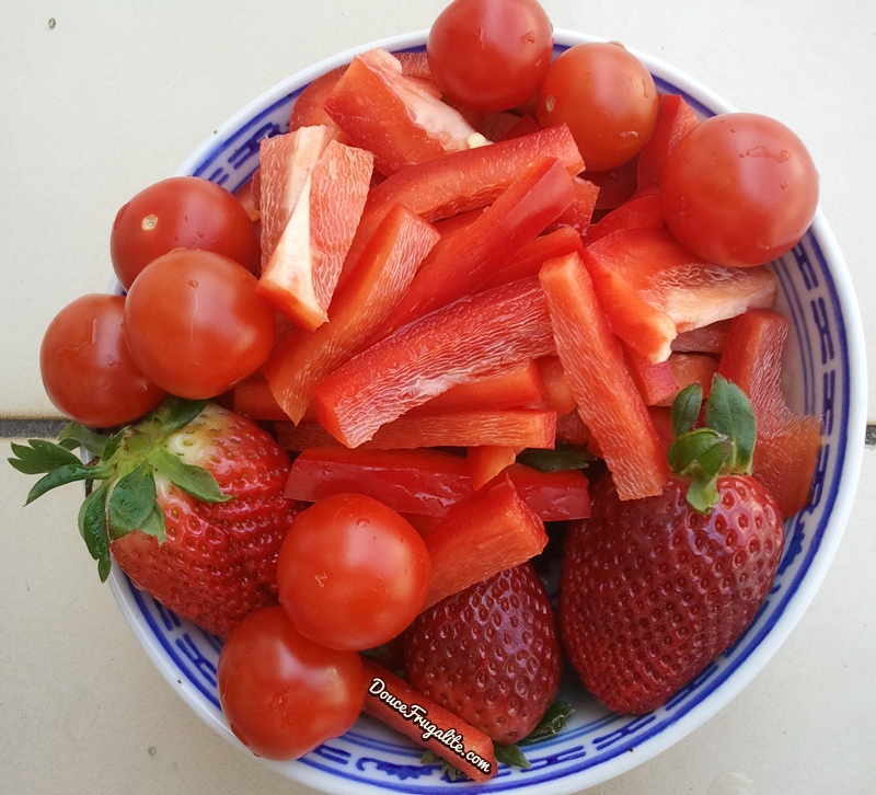 Fraise, tomate-cerise et poivron rouge