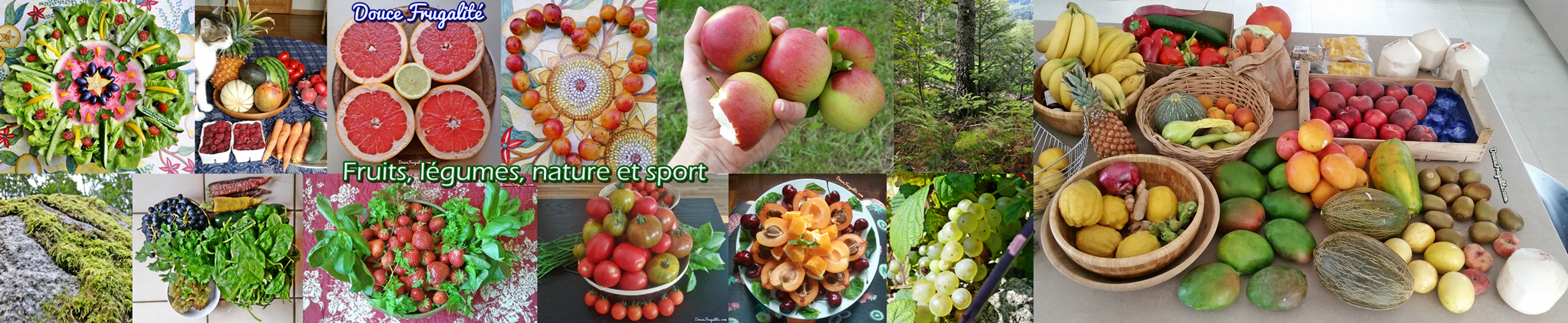 En-tête doucefrugalite fruits bannière banderole frise fruits légumes mandalas réserves garde-manger